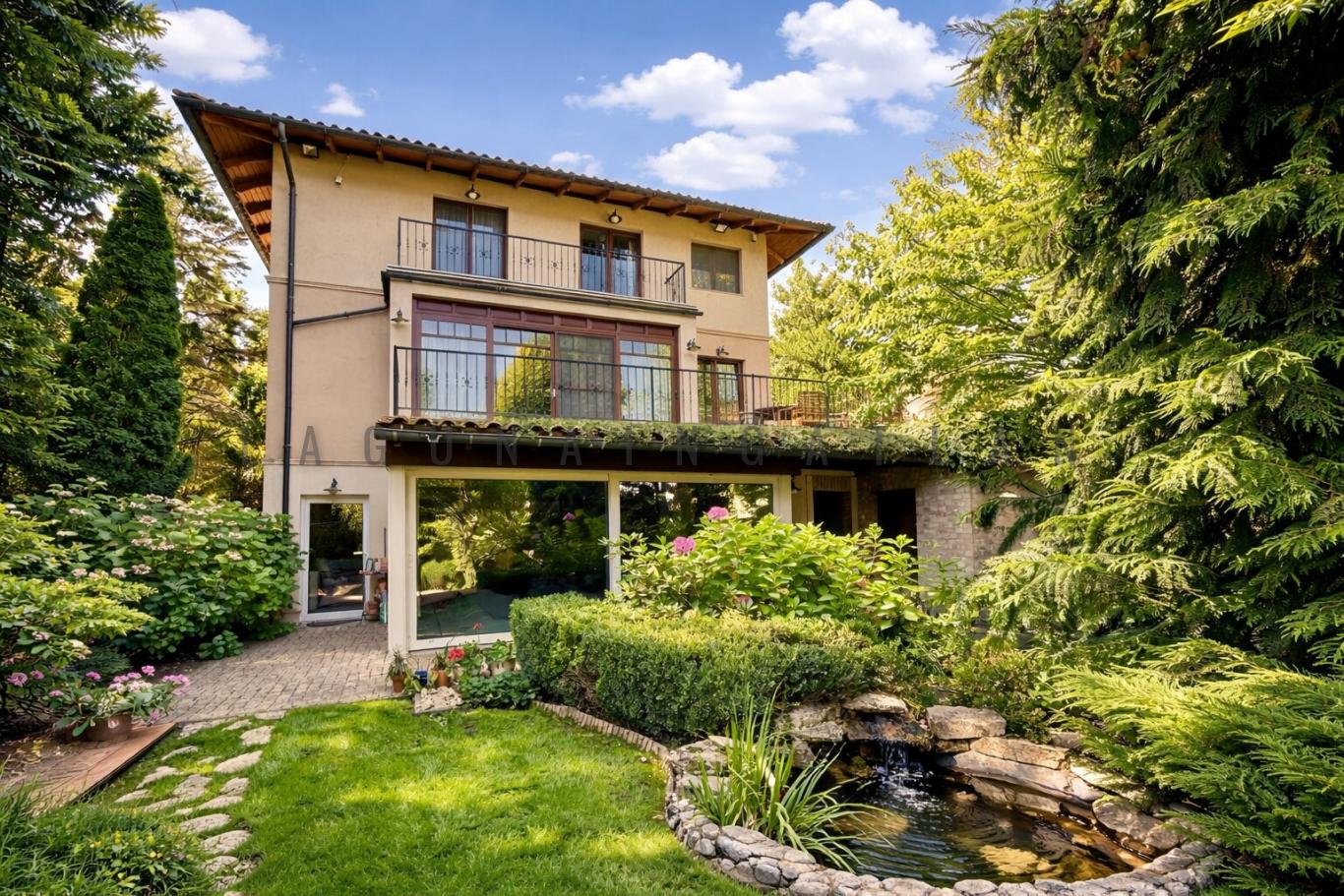 Buda II. ker. Máriaremete újszerű, 400 nm-es, 6 szobás, belső medencés, emberléptékű családi ház eladó.